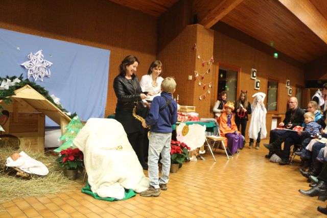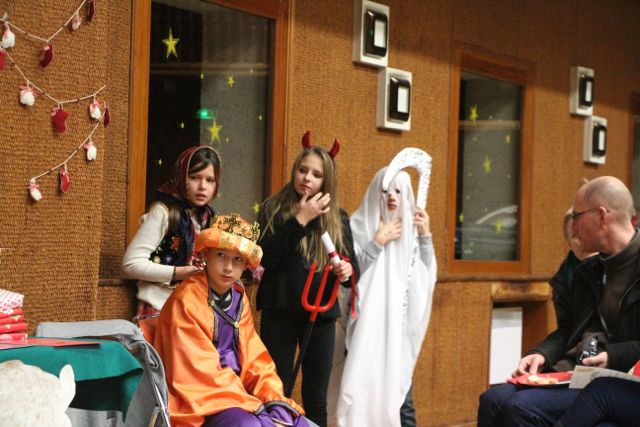 Aktorzy oraz uczniowie grający na instrumentach spisali się rewelacyjnie i wszystkich wprowadzili w świąteczny nastrój. Atmosferze świątecznej sprzyjały również kolędy śpiewane przez uczniów klas młodszych.