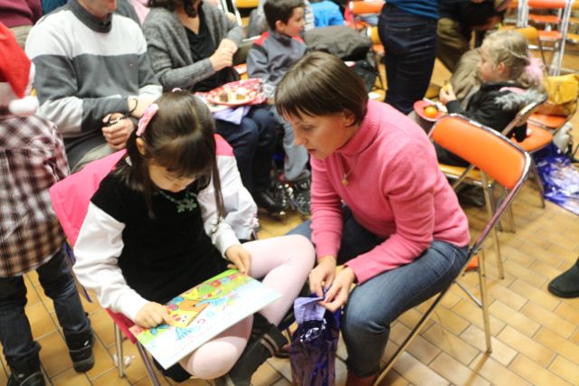 Święty Mikołaj przyniósł prezenty najmłodszym uczestnikom naszego spotkania bożonarodzeniowego. Dzieci w paczkach znalazły mikołaje z piernika i polskie komiksy. Mikołaj miał dla nas dużo czasu, więc chętnie pozował do zdjęć, zagrał kolędę i zaprosił wszystkich do wspólnego śpiewu.
