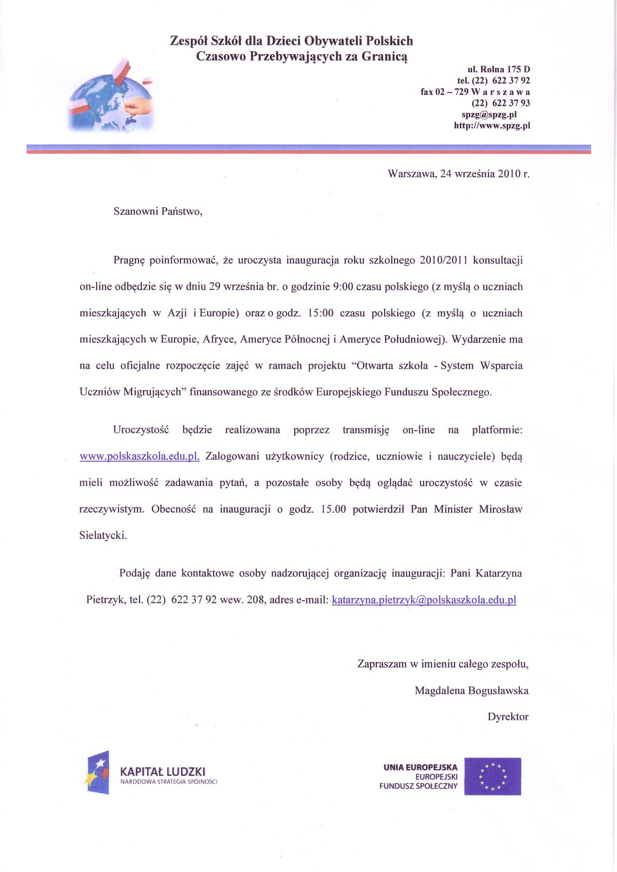 Inauguracja roku szkolnego 210/2011 konsultacji on-line