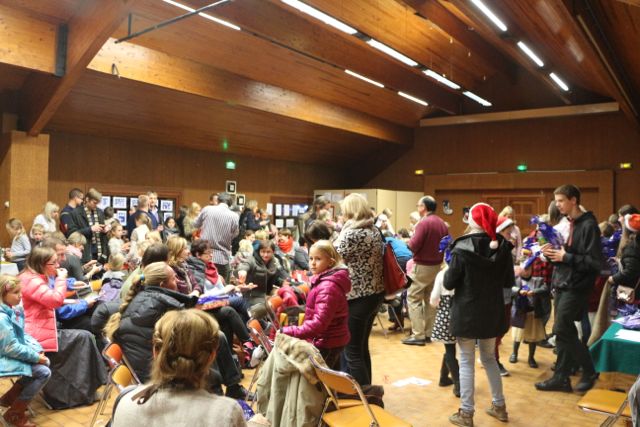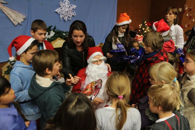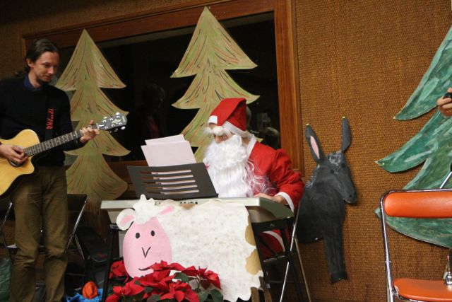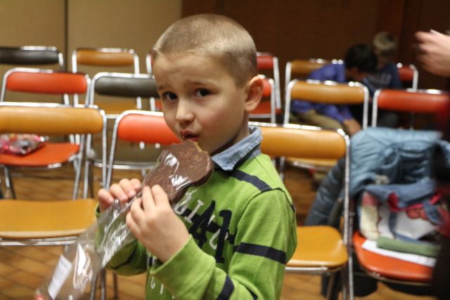 Święty Mikołaj przyniósł prezenty najmłodszym uczestnikom naszego spotkania bożonarodzeniowego. Dzieci w paczkach znalazły mikołaje z piernika i polskie komiksy. Mikołaj miał dla nas dużo czasu, więc chętnie pozował do zdjęć, zagrał kolędę i zaprosił wszystkich do wspólnego śpiewu.