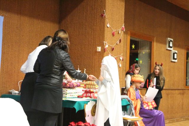 Aktorzy oraz uczniowie grający na instrumentach spisali się rewelacyjnie i wszystkich wprowadzili w świąteczny nastrój. Atmosferze świątecznej sprzyjały również kolędy śpiewane przez uczniów klas młodszych.